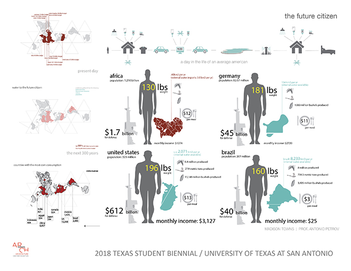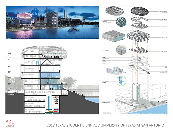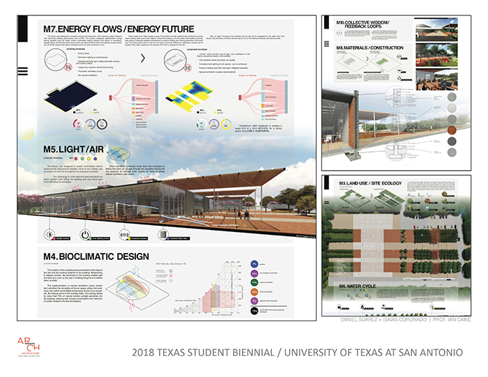 The 2018 Texas Student Biennial is a virtual exhibit representing work from Rice School of Architecture, Prairie View A&M University School of Architecture, Texas A&M University Department of Architecture, University of Houston Gerald D. Hines College of Architecture and Design, University of Texas at Austin School of Architecture and University of Texas at San Antonio College of Architecture Construction and Planning. The purpose of the biennial is to give accredited schools of architecture in Texas a platform for showcasing the best of their students’ work.