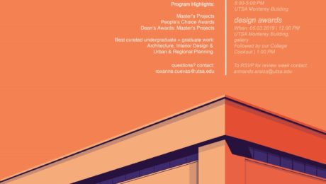 The inaugural UTSA Department of Architecture Open House is on Friday, May 3 from 5:30 – 8 p.m. at our UTSA Downtown Campus, Monterey Building, 301 S. Frio Street. Parking in Monterey lot, overflow parking at Cattleman’s Square. The event is free and open to the public. Our show will present our best curated undergraduate [...]