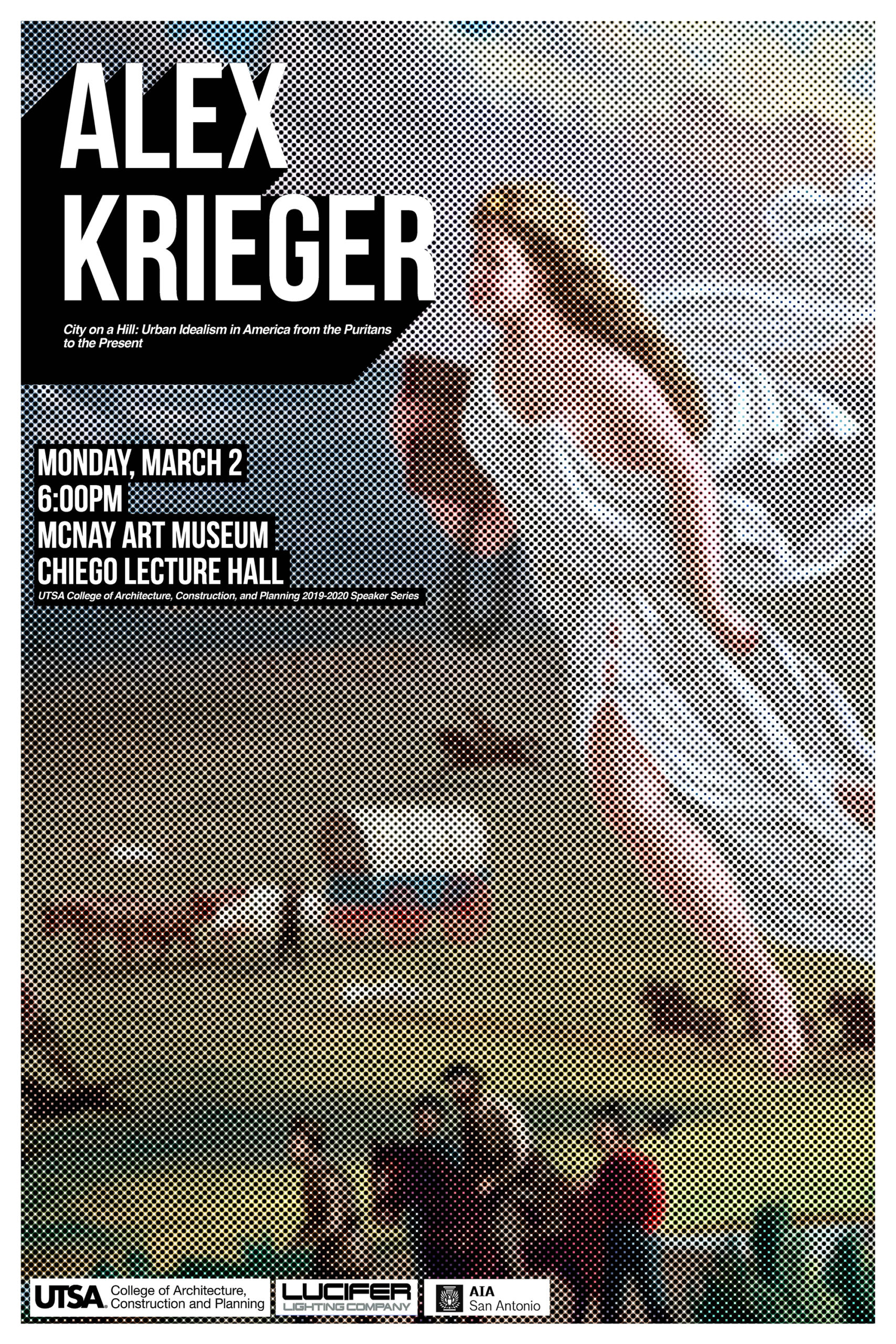 (February 24, 2020) — The UTSA College of Architecture, Construction and Planning (CACP) 2019-2020 Speaker Series continues with Alex Krieger, FAIA, a Professor at the Harvard GSD and a Principal at global architecture and planning firm NBBJ, which focuses primarily on educational, institutional, healthcare, and public projects in complex urban settings. His talk, “City on a Hill: Urban Idealism in America from the Puritans to the Present,” sponsored by Lucifer Lighting and presented in conjunction with AIA San Antonio, is free and open to the public and will be held at 6 p.m. Monday, March 2 in the McNay Art Museum’s Chiego Lecture Hall.
